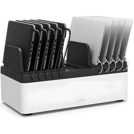 View Full DetailsCharge up to 10 devices at once with this versatile, wall-/desktop-mountable base. Features fixed compartments, surge protection, and AC compatibi...