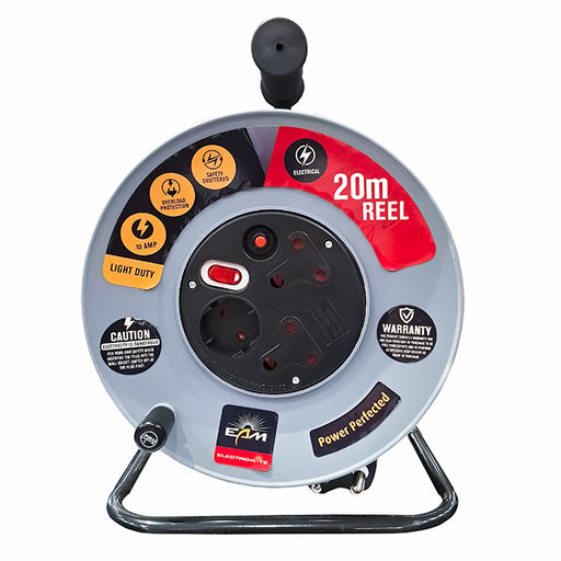 View Full DetailsIntroducing the ELECTRICMATE 10 Amp Steel Extension Reel 20M: A Durable and Reliable Power Solution The ELECTRICMATE 10 Amp Steel Extension Reel 2...