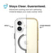 Made with innovative materials that resist yellowing over time, it keeps your phone looking pristine longer. Despite its slim profile, this case offers powerful protection with our proprietary clear cushioning rubber that compresses on impact to help absorb shock and prevent damage from drops—proven to withstand falls from up to 13 feet.Built-in precision magnets ensure seamless compatibility with all Apple MagSafe® chargers and accessories, so charging and snapping on accessories is effortless. For added peace of mind, a raised bezel guards your screen against scratches and cracks from face-down drops. And with a newly redesigned button structure, you’ll enjoy a more satisfying click and responsive feel every time.