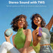 Enable True Wireless Stereo (TWS) pairing to connect two speakers wirelessly for an enhanced, immersive sound experience with stereo separation.