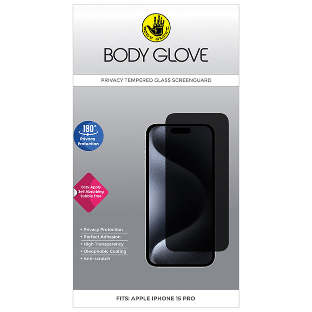 Body Glove Privacy Tempered Glass Screen Protector For iPhone 15 Pro - Clear