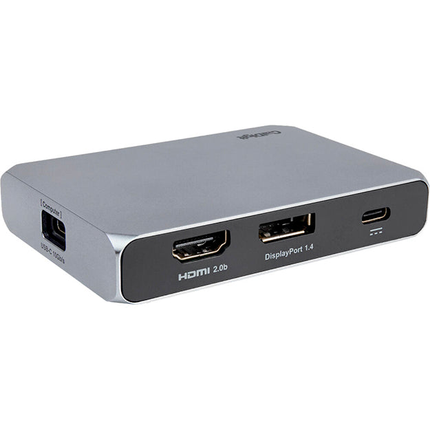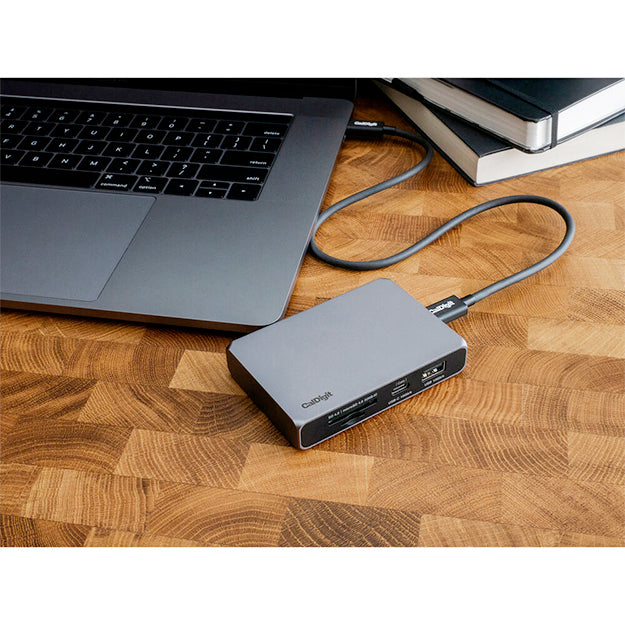A pass-through USB Type-C port offers up to 90W of charging power to your laptop. Connect a single compatible display through the additional USB Type-C port for 4K resolution at 60 Hz. You can also connect displays through the HDMI and DisplayPort ports. Featuring both SD and microSD card readers, this dock is ideal for any creative professionals who need access to memory cards while working in the field. The dock comes in a compact form factor, making it easily storable in a laptop bag or backpack, and features an aluminum body that dissipates heat.