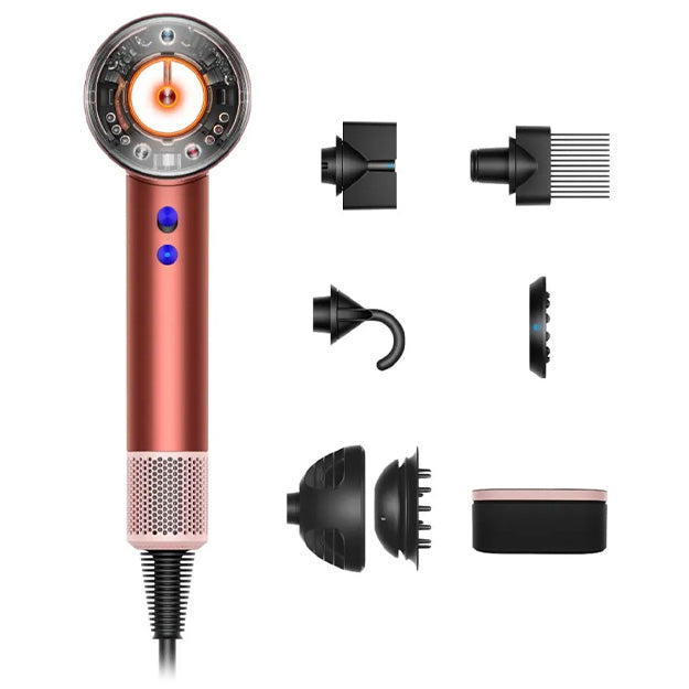Whether visible through the clear end cap, suspended in the capsule, or neatly hidden in the handle, this intelligent hair dryer is packed with pioneering Dyson technology.