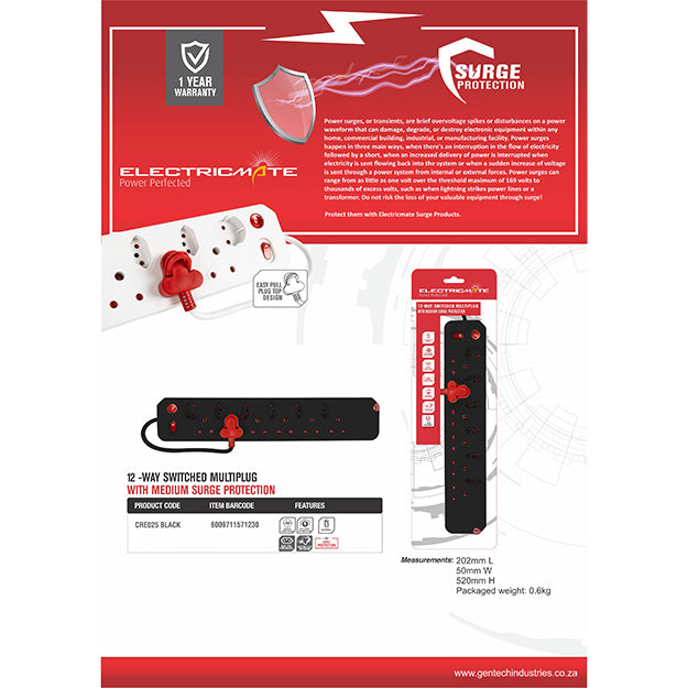 Introducing the ELECTRICMATE 12-WAY SINGLE SWITCH SURGE MULTIPLUG BLACK: Premium Surge Protection in Black