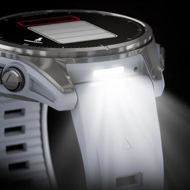 For serious athletes and adventurers who want to push beyond their limits, this premium multisport GPS smartwatch is built to perform — with advanced strength training features, dive capability, an internal speaker and mic for voice features, a built-in LED flashlight and compact styling for smaller wrists.