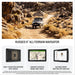 The 8” high-resolution, ultrabright and glove-friendly touchscreen sat nav is purpose-built to withstand extreme temperatures and weather (IP67 dust/ water rating) for rugged off-road adventures. Plus, the upgraded processor with a 10 Hz GPS receiver delivers faster performance, including map drawing and route calculations.