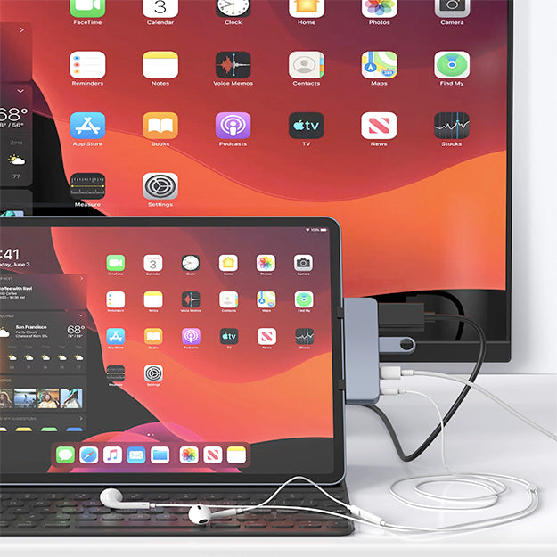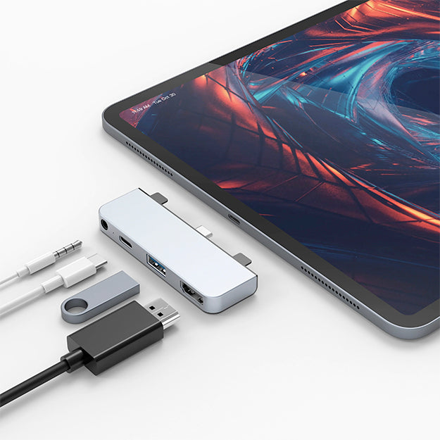 Form-fitting USB-C hub for iPad Pro, iPad Air, and iPad mini 6.