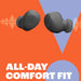 The ergonomic, bud design of the JBL Vibe Buds  ts so comfortably you may forget you’re wearing them. The bud design gently seals your ears blocking external noises and enhancing the bass performance.