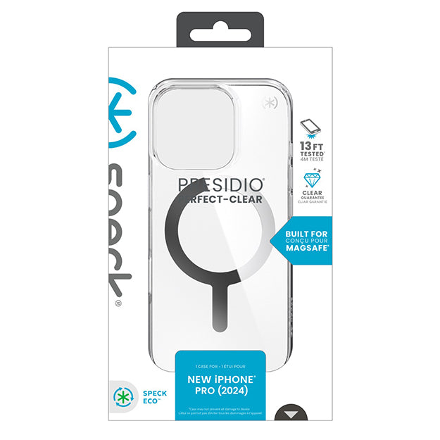 Speck Presidio Perfect Clear MagSafe Case For iPhone 16 Pro – Clear & Chrome