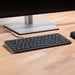 The compact keyboard fits in even crowded workspaces, and it works with a variety of devices and operating systems.
