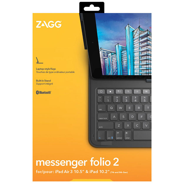 Zagg Messenger Folio 2 Bluetooth Keyboard Case For iPad 10.2"(Gen 7, 8 & 9) & 10.5" iPad/Air 3 - Grey